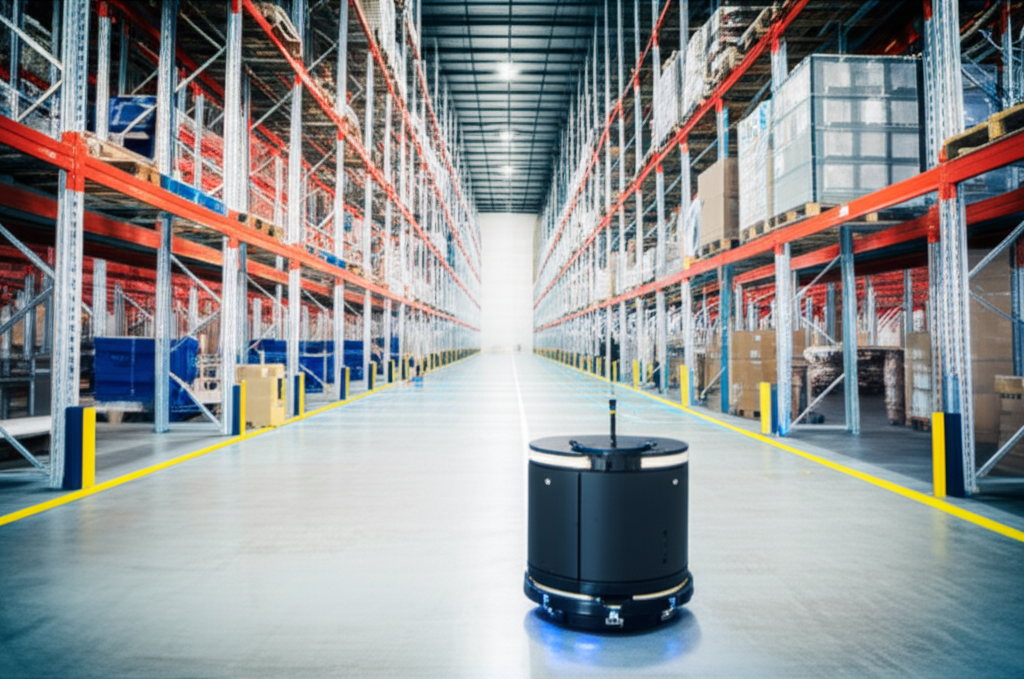 Palabras clave objetivo (naturales en el texto): planificación de rutas, docking milimétrico, navegación indoor, robots móviles autónomos (AMR), logística 4.0, sensores de posicionamiento, simulación 3D, eficiencia operativa, diplomado en logística.