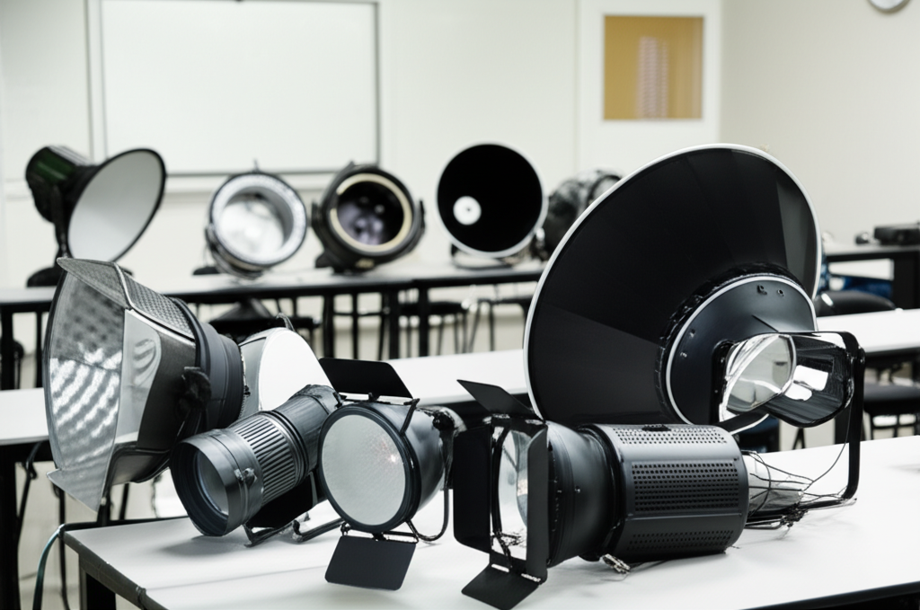 6.2 Tipos de reflectores: parabólicos, elípticos, esféricos y su uso en la iluminación.