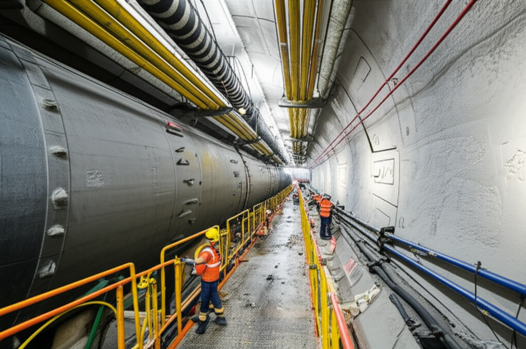 La Ingeniería de Túneles y Obras Subterráneas (TBM/NATM, ventilación, seguridad y emergencia) aborda el diseño y ejecución de estructuras subterráneas mediante tecnologías avanzadas como las TBM (Tunnel Boring Machine) y el método NATM (New Austrian Tunneling Method), integrando sistemas de ventilación críticos para garantizar condiciones ambientales óptimas y gestión de riesgos en emergencias. Los fundamentos técnicos se apoyan en análisis geotécnicos, modelación numérica con FEM y herramientas de monitoreo en tiempo real que permiten evaluar la estabilidad estructural y controlar parámetros dinámicos de la excavación, fortaleciendo la seguridad operativa y mitigación de impactos indirectos en entornos urbanos y de infraestructuras críticas.